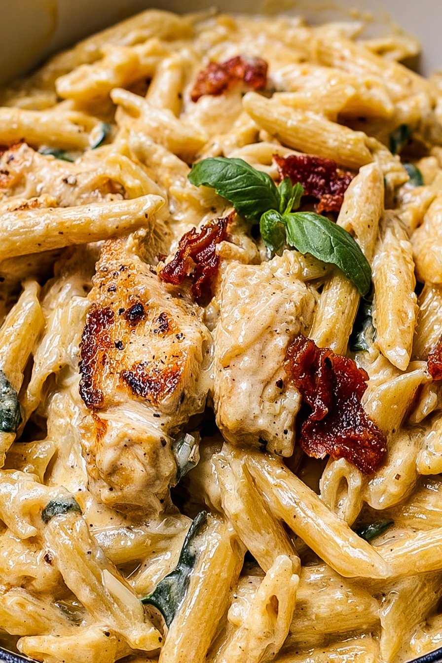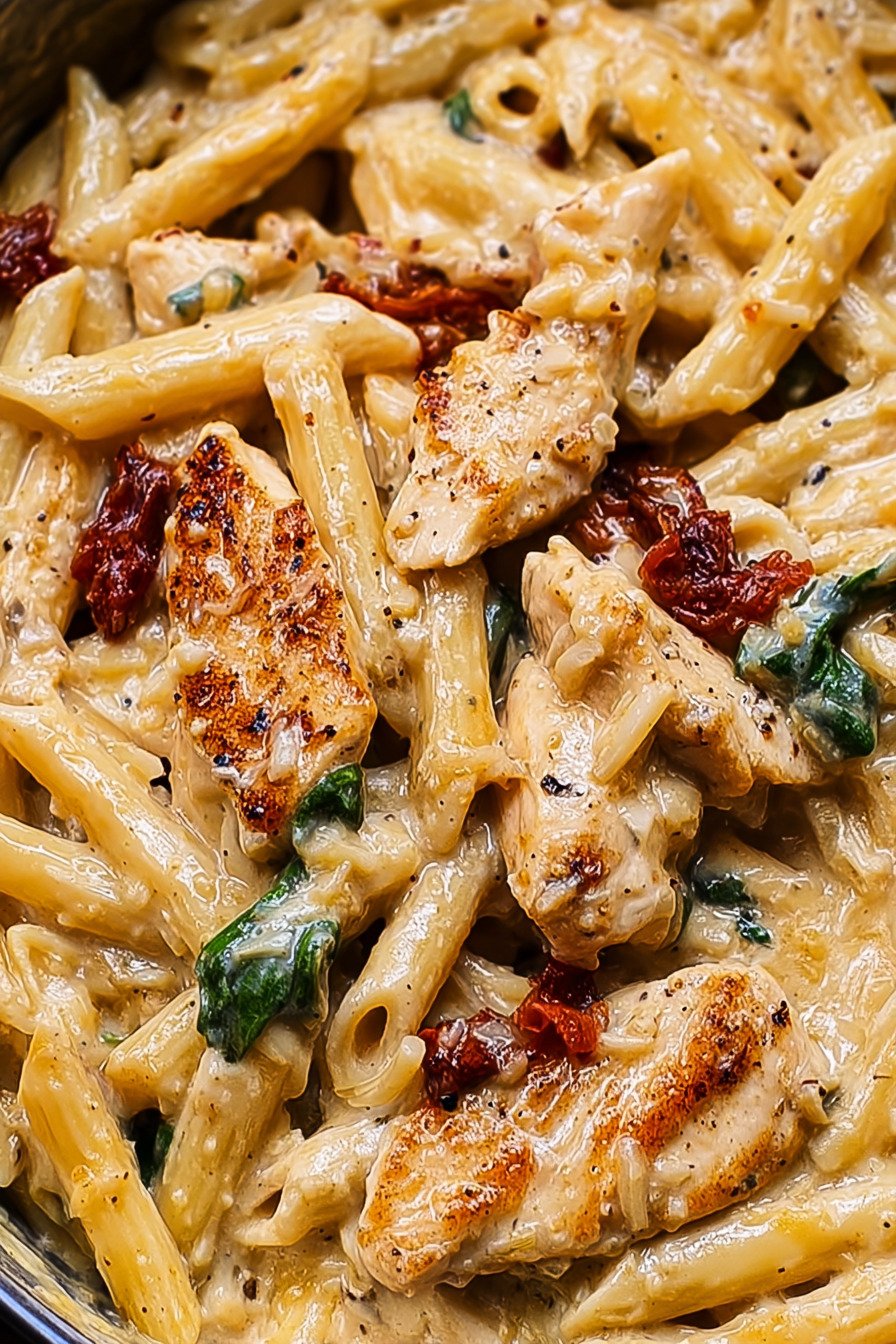I cook for comfort and for smiles. This dish gives both. Tender chicken meets a creamy sauce with sun dried tomato and a soft bite of pasta. I plate it and the table goes quiet in a good way.