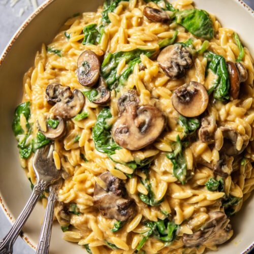 2) Easy Creamy Mushroom Spinach Orzo Recipe