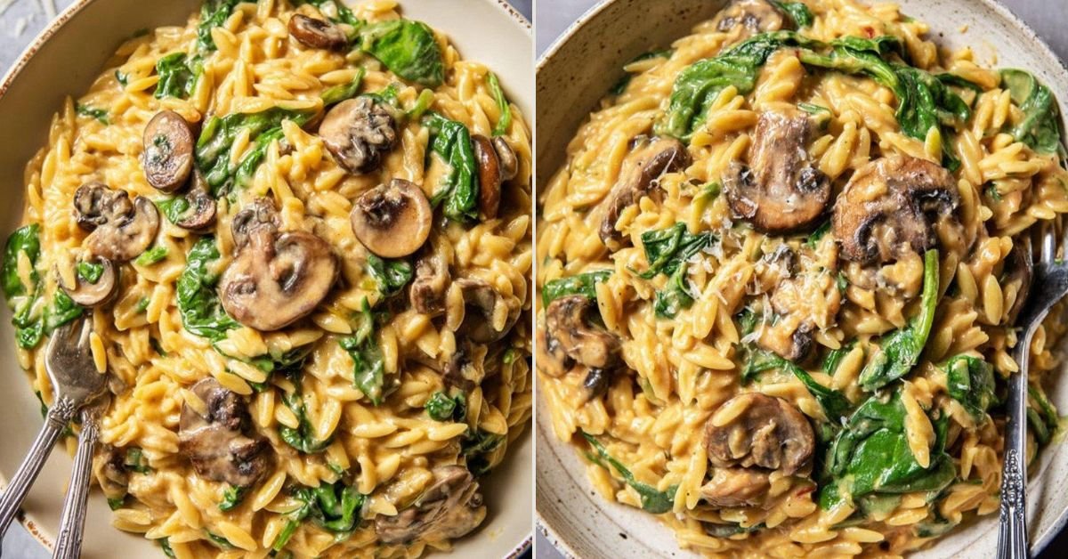 - 2) Easy Creamy Mushroom Spinach Orzo Recipe
