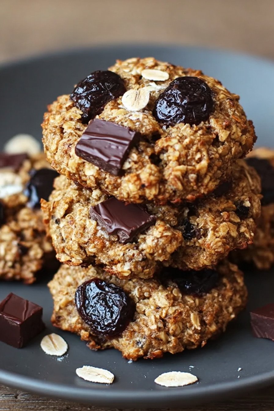No sugar added and no flour used. Oats give body. Banana brings moisture. Dark chocolate gives small puddles. Nuts add crunch. The mix works for busy days. The method feels simple and friendly.