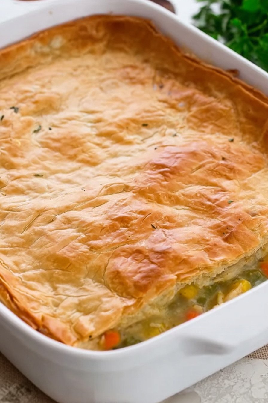 I share a cozy bake from my kitchen at Lila Cooks. I am Lila and I love simple food that still feels special. This dish gives a golden lid and a creamy center. The crust flakes. The filling tastes savory with a soft herb note. You get comfort that lands fast on a busy night. You can learn more about me on Lila Cooks.