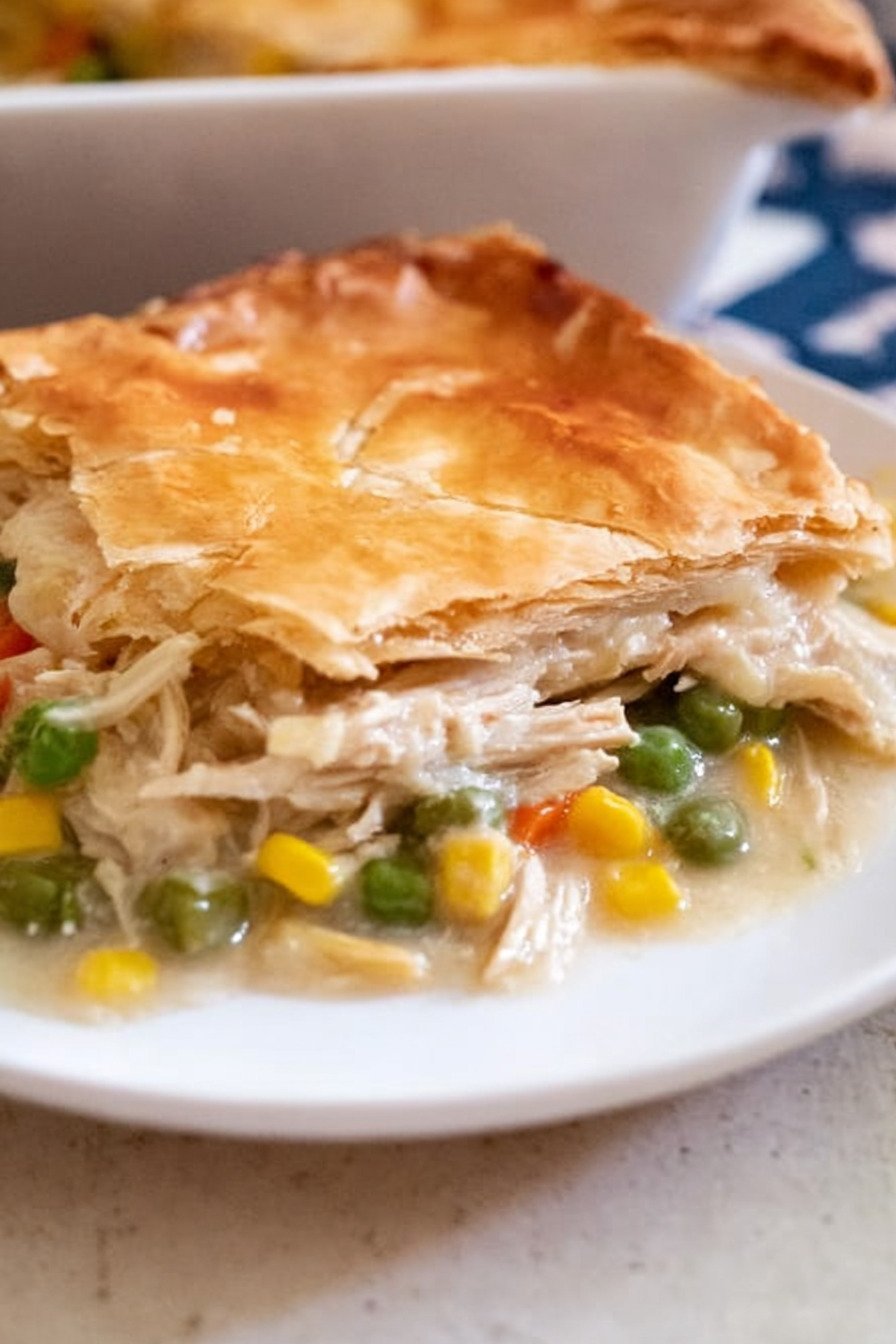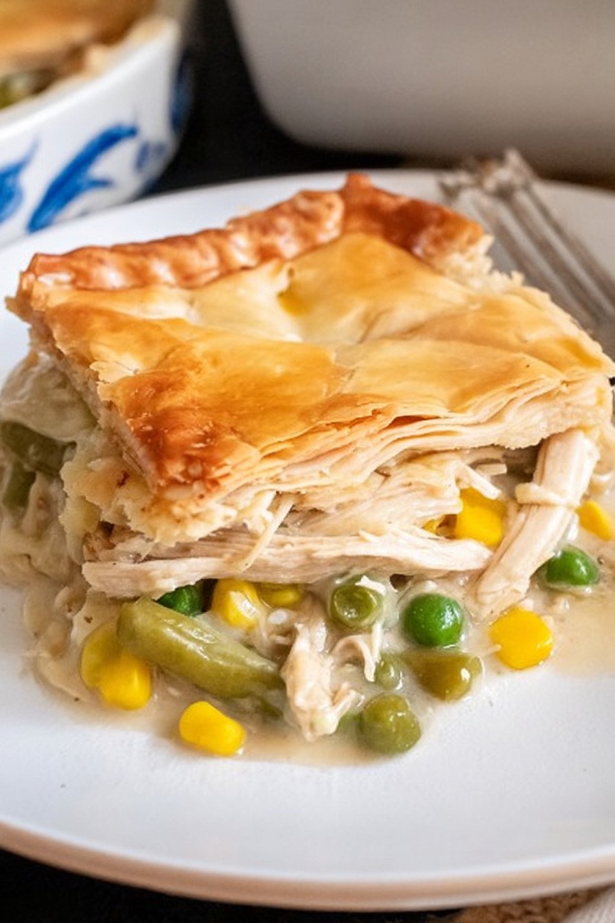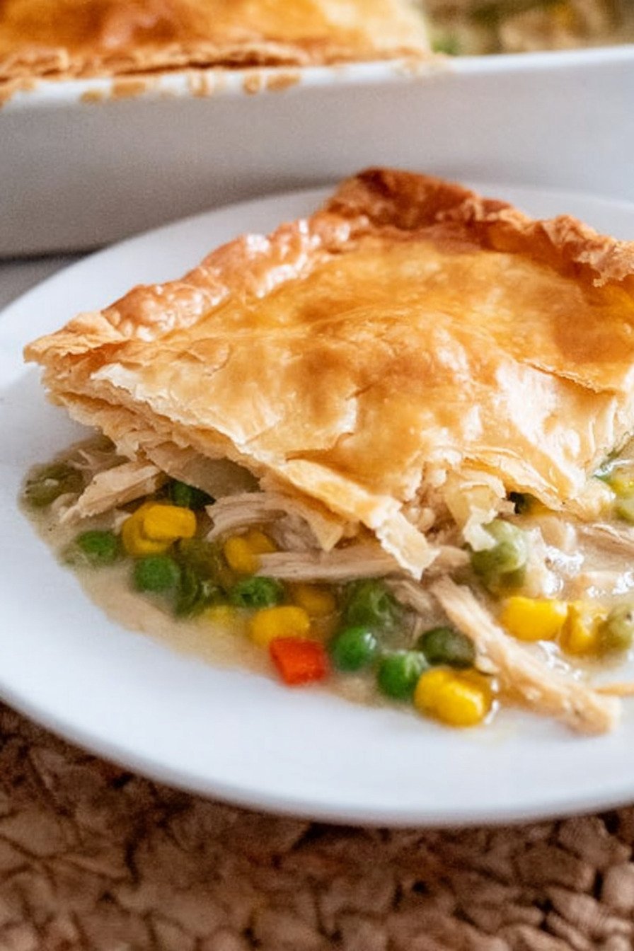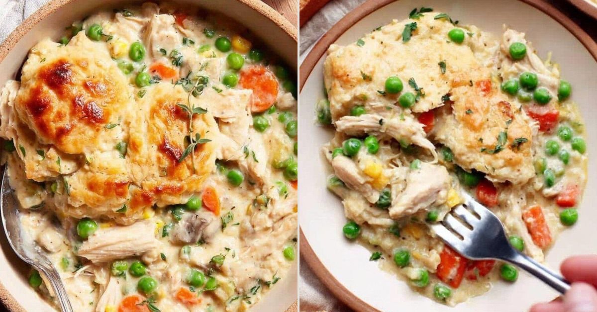 Prep stays short. You start with cooked chicken and mixed veggies. A quick gravy brings it together. The method fits a weeknight but still looks welcome on a Sunday table. The first spoon into the pan gives a soft crack from the crust and steam that smells like home.