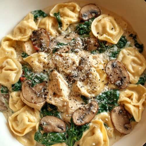 There’s something comforting about one pot pasta meals that makes them feel like a warm hug after a long day. This creamy spinach and mushroom tortellini is one of those recipes that you keep in your back pocket for when you want something hearty, easy, and a little indulgent without turning your kitchen into a disaster zone. I still remember the first time I tried making tortellini at home. Let’s just say the kitchen looked like a flour bomb had exploded, and half the pasta stuck together like long-lost cousins who didn’t want to be separated. But this recipe? It saves you from all that chaos. You just toss everything in one pot, let it simmer, and you’ve got a creamy, cheesy dish that feels restaurant-worthy with almost no effort. If you’re like me and love easy tortellini recipes that don’t require an army of pans or hours of clean-up, you’ll want to bookmark this one. It blends the earthiness of mushrooms with the fresh bite of spinach, all wrapped in tender tortellini pasta. Whether you’re looking for tortellini dinner recipes to serve a crowd or simple recipes using tortellini for a cozy night in, this dish checks every box.