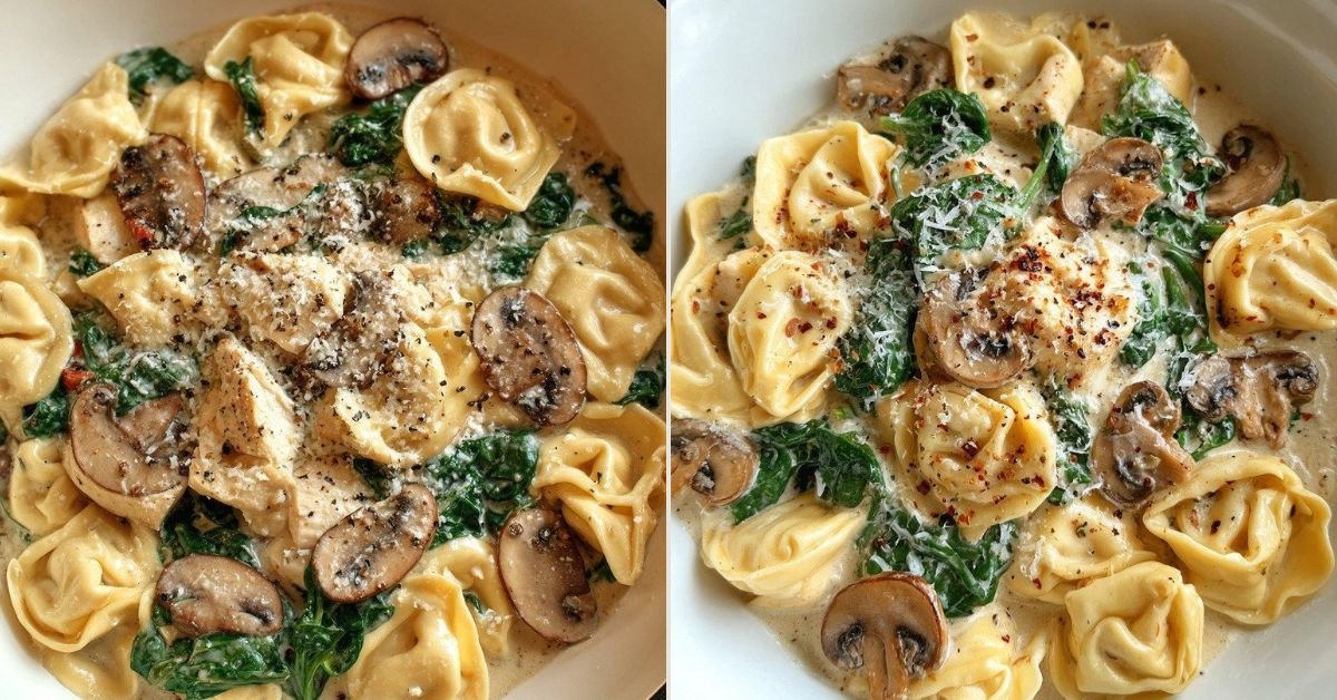 2) Easy Creamy Spinach and Mushroom Tortellini Recipe