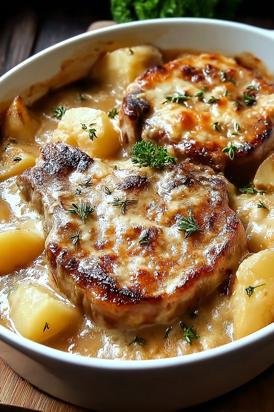 Lila here from Lila Cooks, and this cozy pan of comfort has saved more than one tired evening at my place. I love Pork Chop Recipes that work hard for me, and this smothered pork chops recipe gives tender smothered pork chops, creamy scalloped potatoes, and a mellow cheesy sauce in one snug dish. The first time I pulled it from the oven, my family hovered near the stove and tried to sneak bites straight from the pan. Think of it as the warm hug of fried pork chop recipes without a sink full of grease. We start with seasoned chops, nestle them into soft layers of potatoes, then spoon rich sauce over the top until everything bubbles together. You can serve it for lazy Sunday dinners, cozy weeknights, or whenever recipes for pork chops need a little extra comfort. If you keep a short list of pork recipes on repeat, this one slides right in with your favorite Pork Recipes For Dinner. It reheats like a dream, feels special enough for guests, and still fits busy life. I keep leftovers for the next day, they seem to vanish long before lunch, and I act surprised every time.