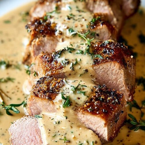 Keywords: Bacon Wrapped Pork Tenderloin Recipes, Creamy Pork Tenderloin Sauce, Dijon Cream Sauce, Easy Pork Tenderloin Recipes, holiday dinner, pan sauce, Pork Tenderloin Dinner Ideas, Pork Tenderloin Recipes, Savory Pork Recipes, weeknight dinner