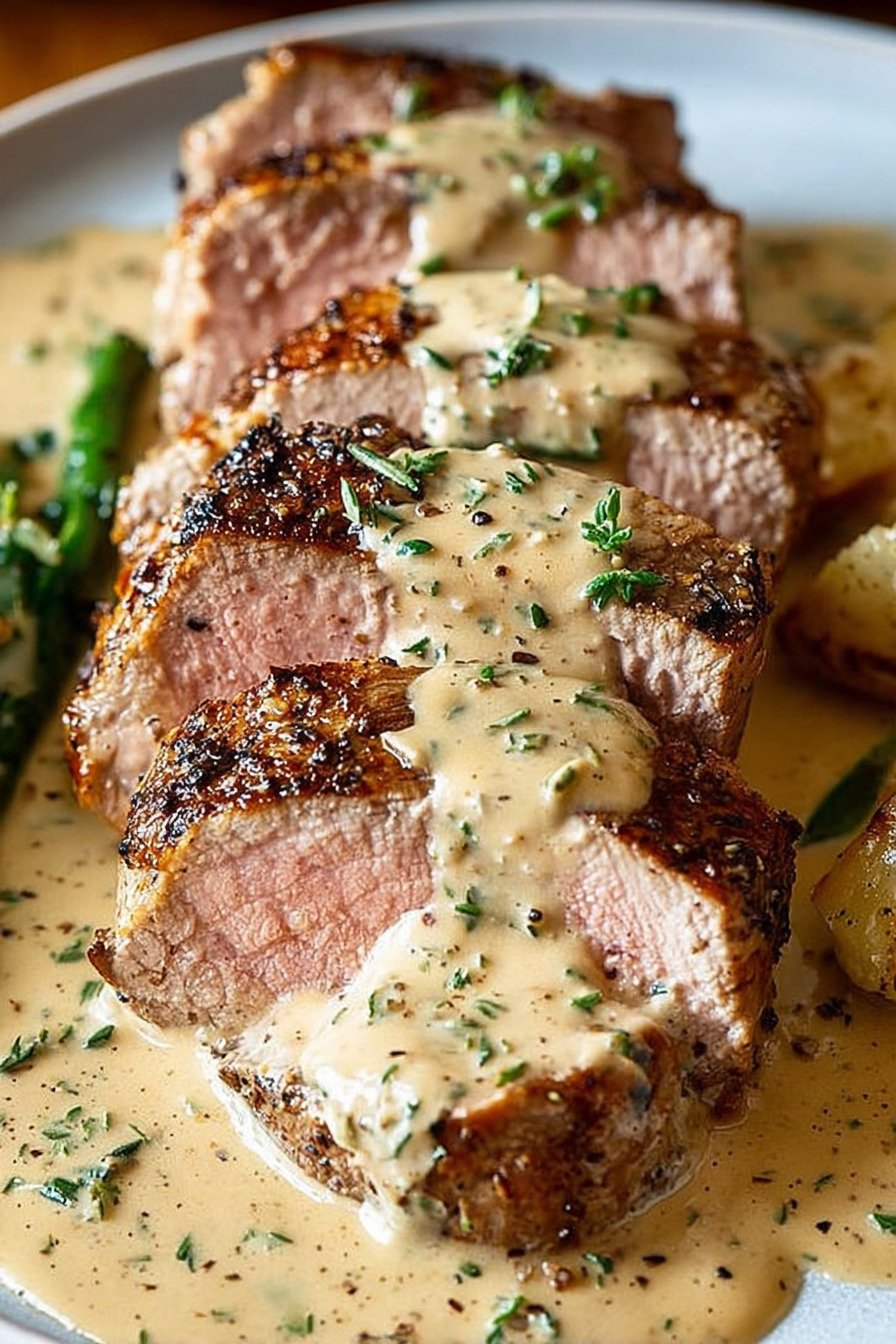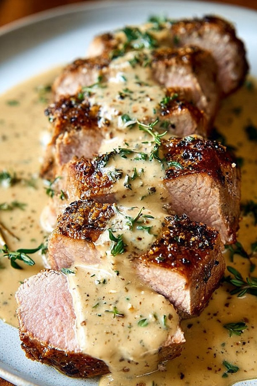 • 2) Easy Pork Tenderloin with Dijon Cream Sauce Recipe