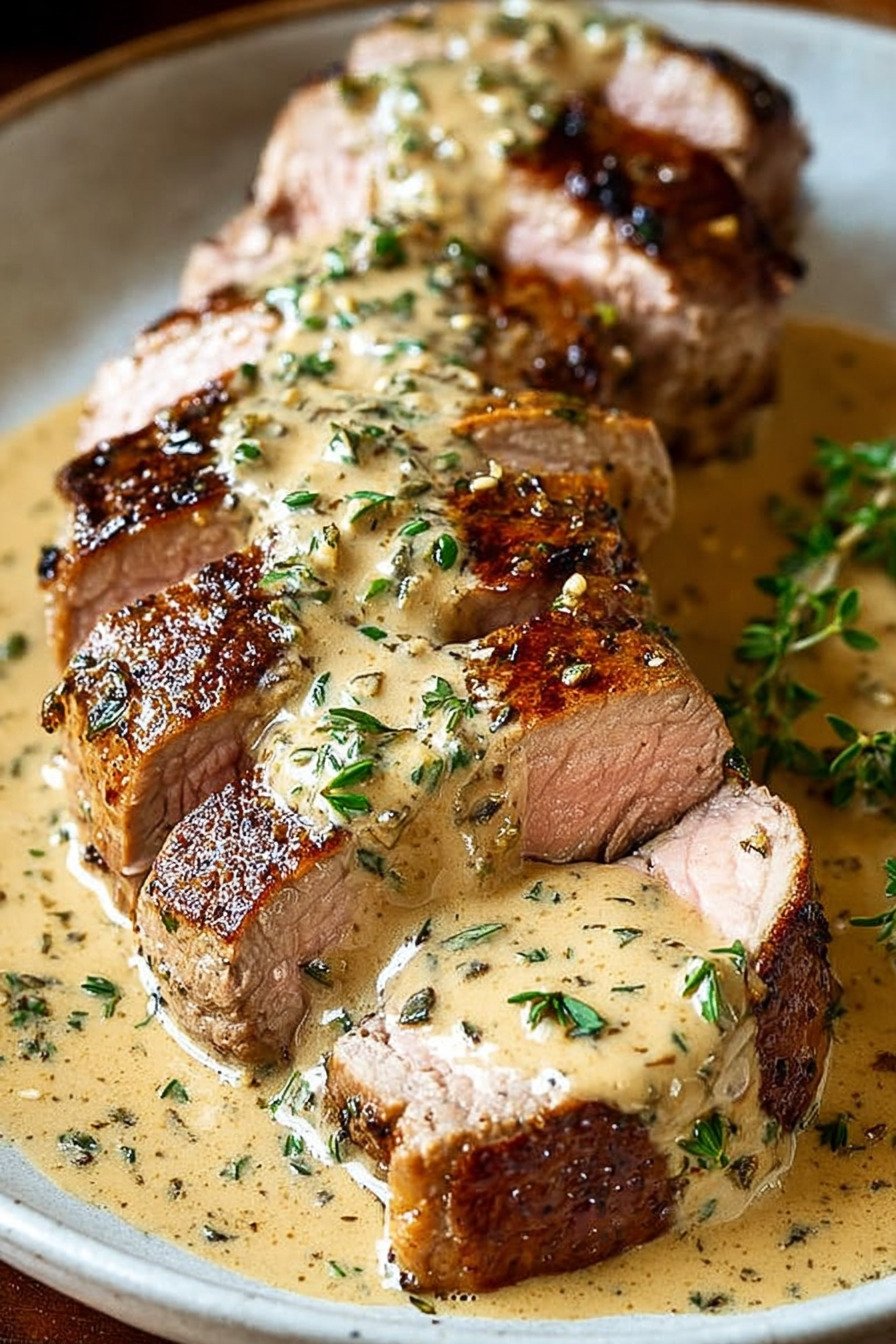 2) Easy Pork Tenderloin with Dijon Cream Sauce Recipe