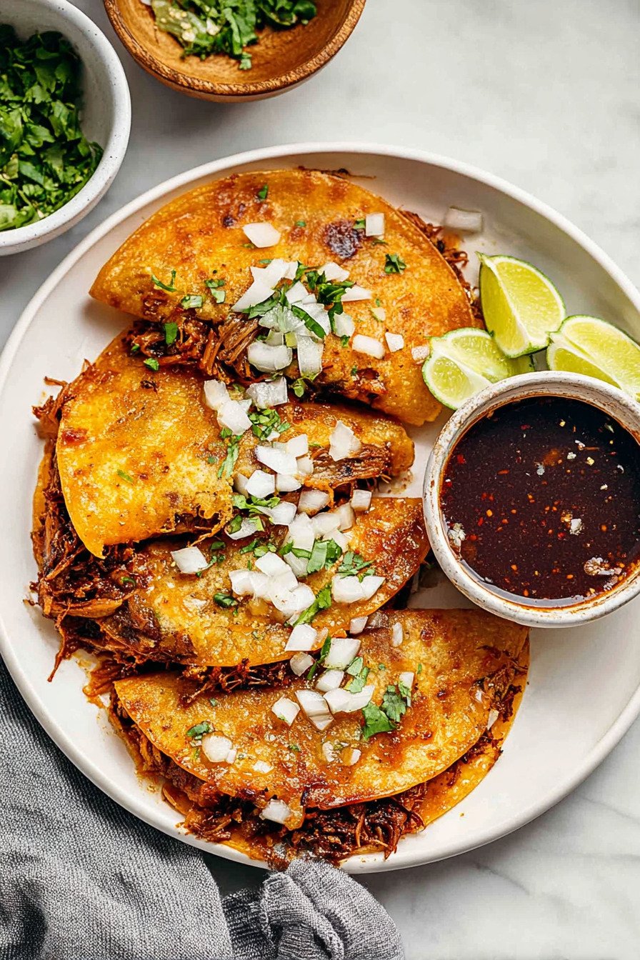 To achieve perfectly crispy tacos, don’t skip dipping the tortillas in consommé before frying. This step ensures maximum flavor and gives the tacos their signature texture found in top mexican crockpot recipes.