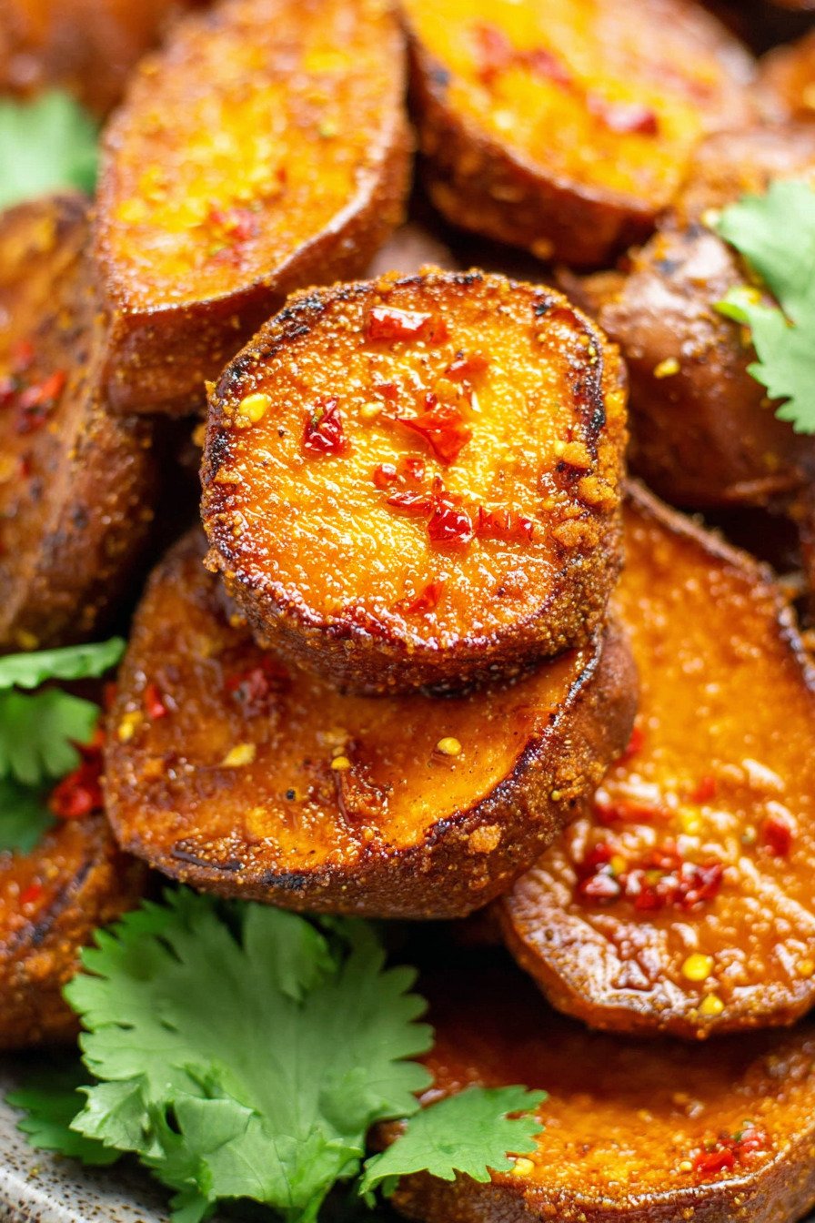 Chili powder Warm and earthy. It sets the base for a spicy sweet potato recipe that reads balanced rather than sharp.