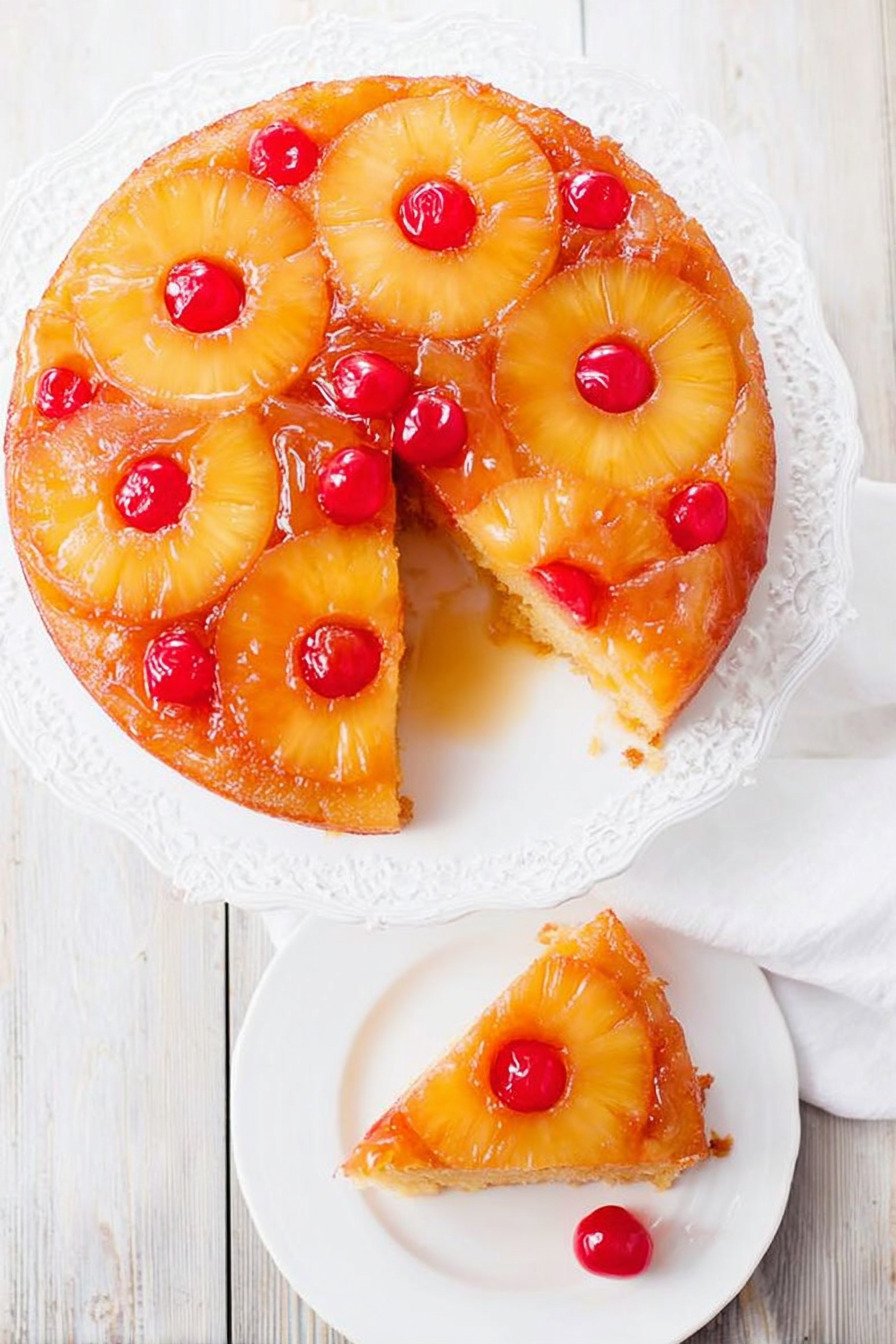 There is something timeless about a pineapple upside down cake recipe. It feels cheerful, a little retro, and always impressive once that glossy fruit topping is revealed. With its rich buttery base, golden pineapple rings, and sweet cherries tucked into every slice, this dessert brings classic comfort to the table in the most delicious way.