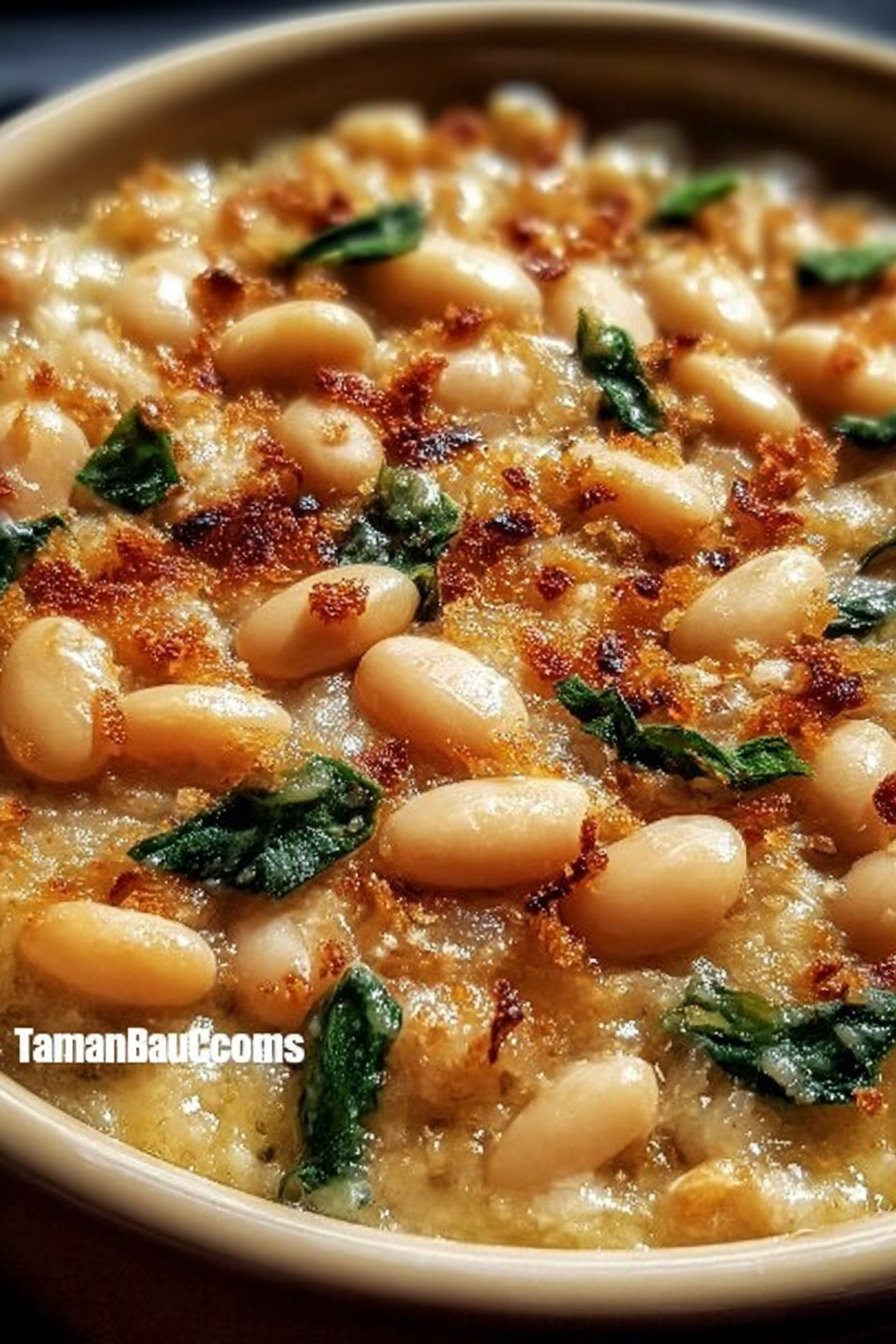 Warm beans meet a crisp top. The center stays creamy. The pan tastes rich without fuss. You get comfort that sits light.